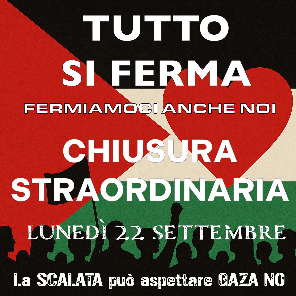 Questa palestra aderisce allo sciopero generale nazionale indetto in solidarietà del popolo palestinese e contro il genocidio in corso a Gaza.
